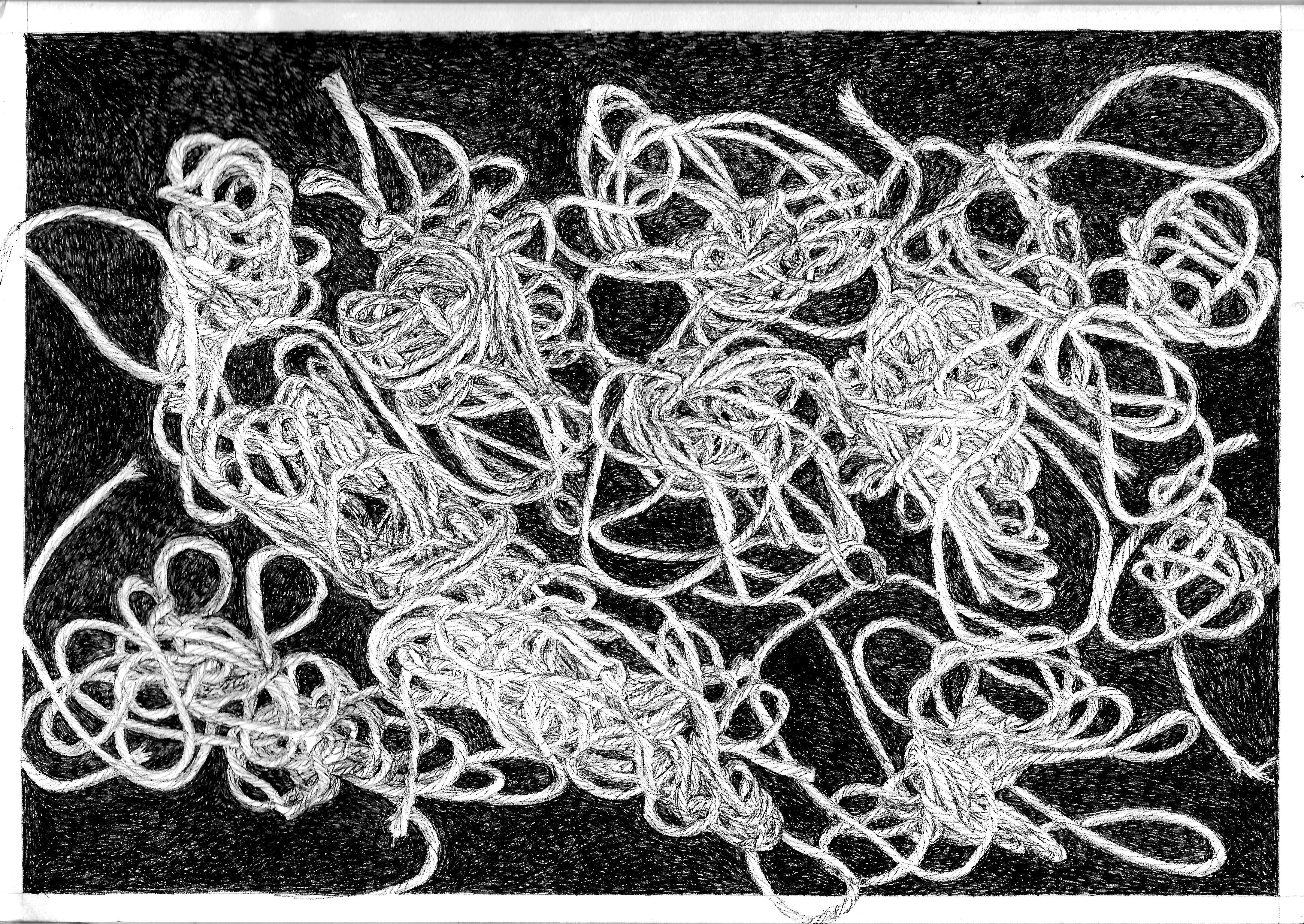 For a couple of months now, I have been drawing knots and writing about them and next I will be making some models/sculptures of them. It was a reflection on my state of mind, personal instances of misunderstandings and miscommunication, echoing the work of R.D. Laing and my political sorrows and inability to understand the callous behaviour of the new Conservative government.