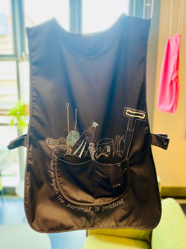Brigid always wore an apron when she did her housework and she would have loved this tabard reminding her of all her hard work and journey she had been on since leaving Ireland.